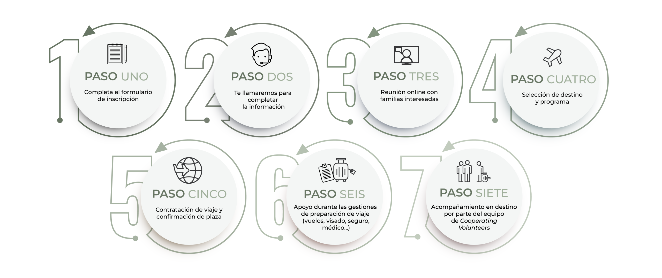Programas de voluntariado: programa de cuidado de niños, programa de apoyo a la enseñanza, comunitario y medioambiental o de construcción.